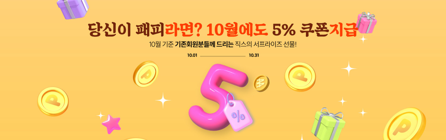 (종료)[10월] 기존회원 5% 할인 쿠폰 드려요!