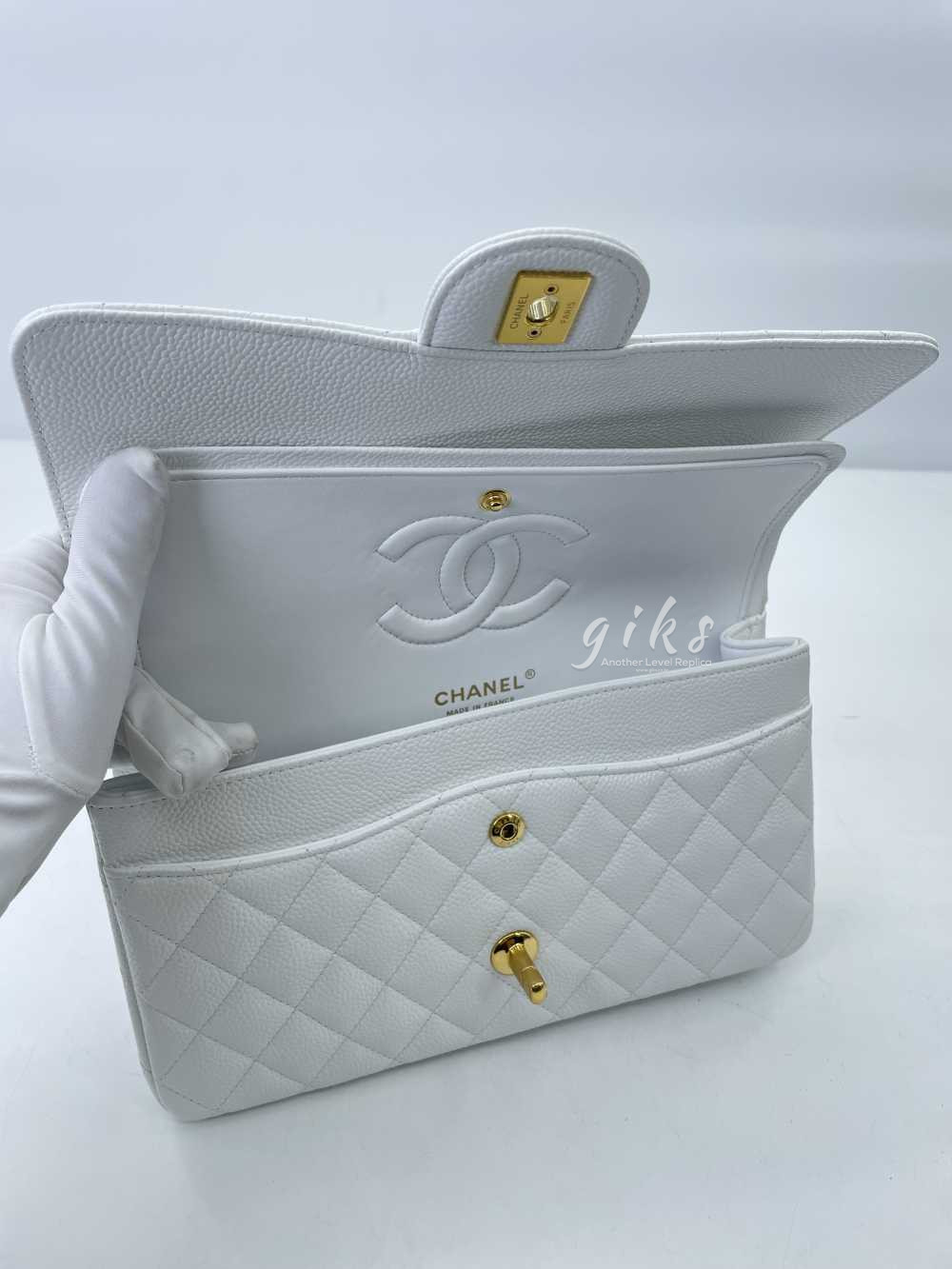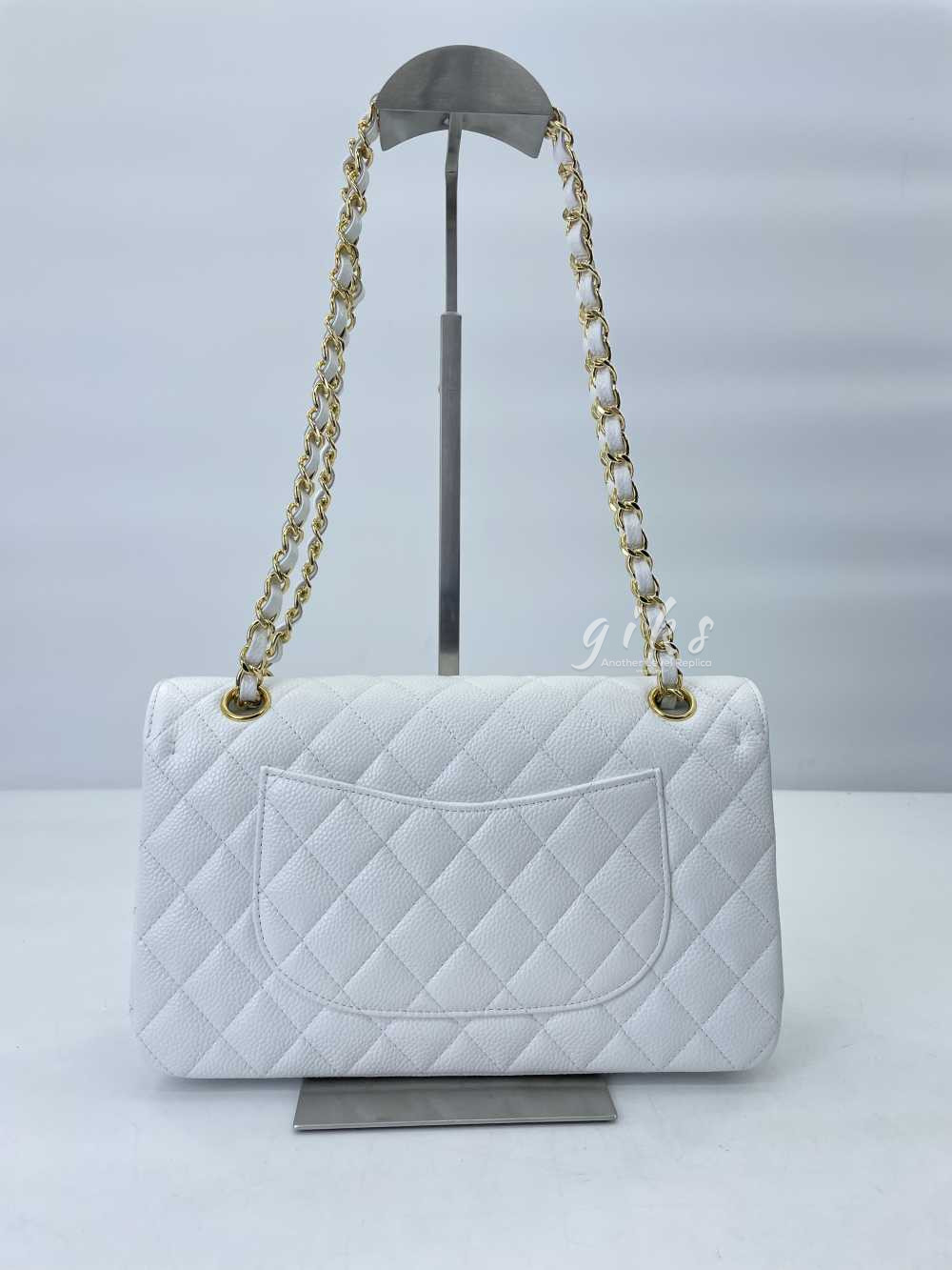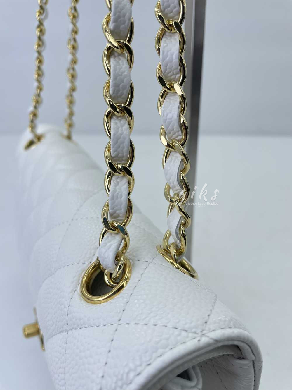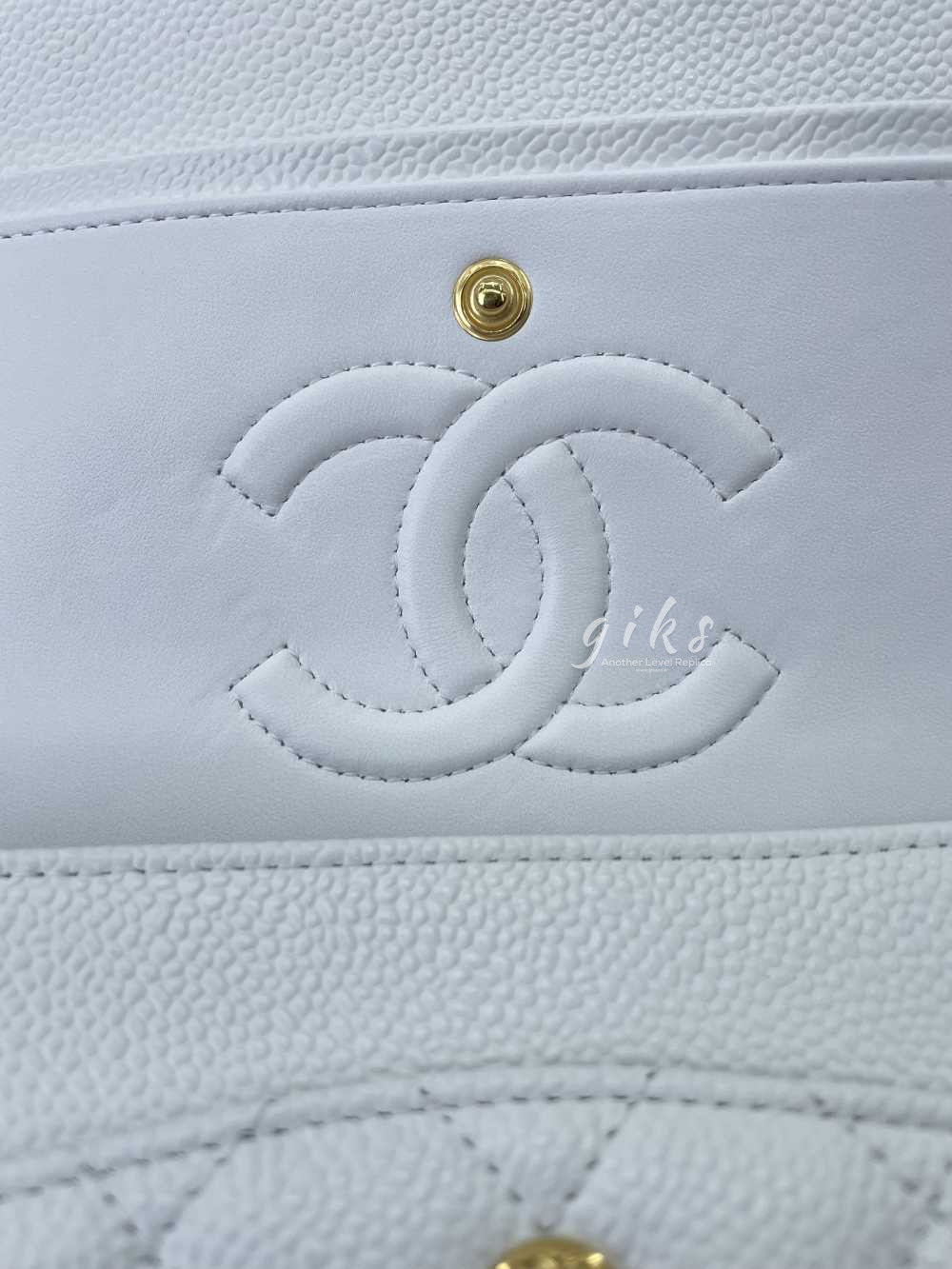 샤넬 클래식 미디움 카프스킨 화이트 골드