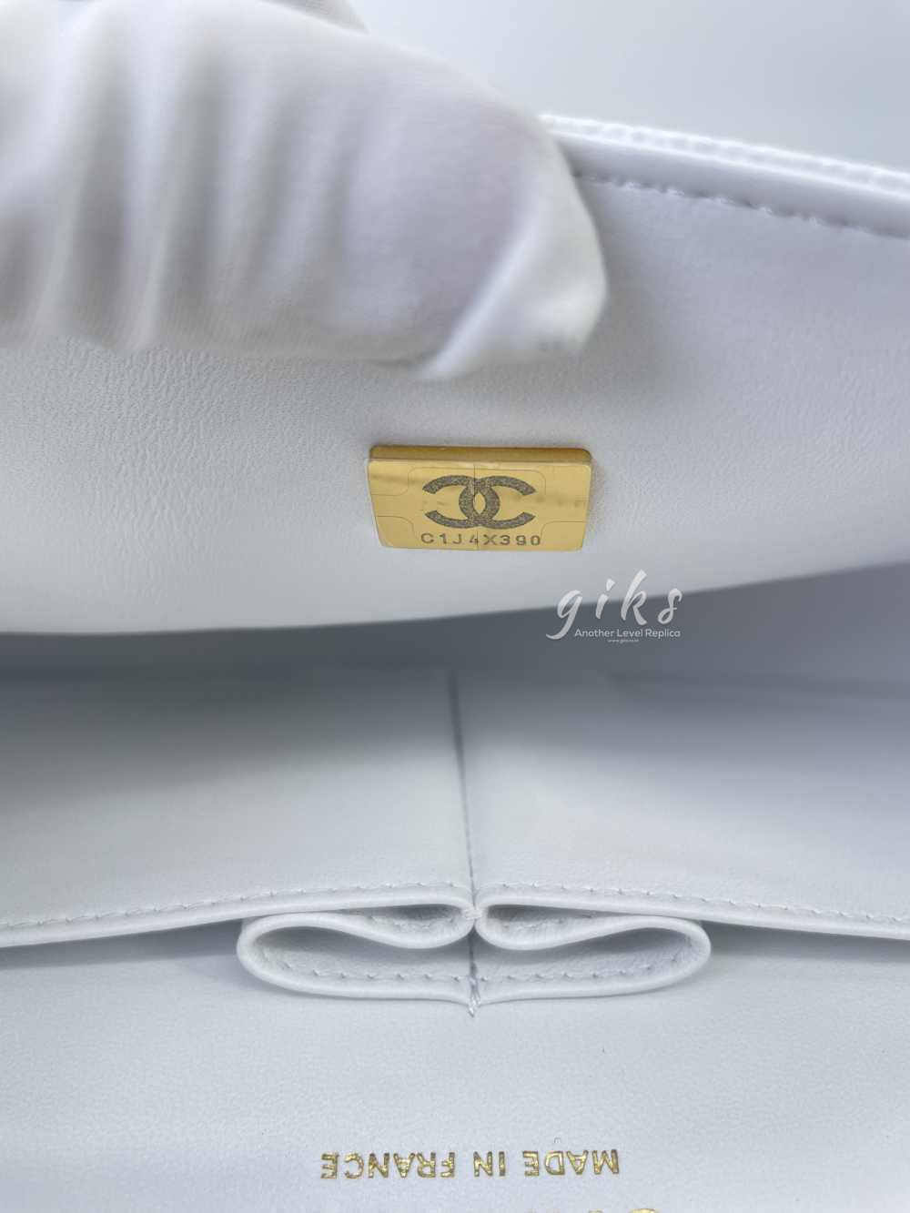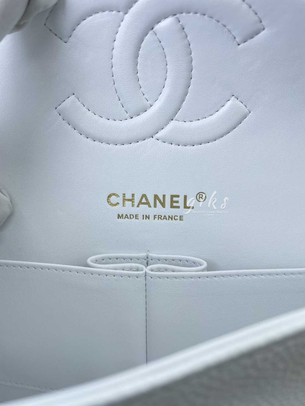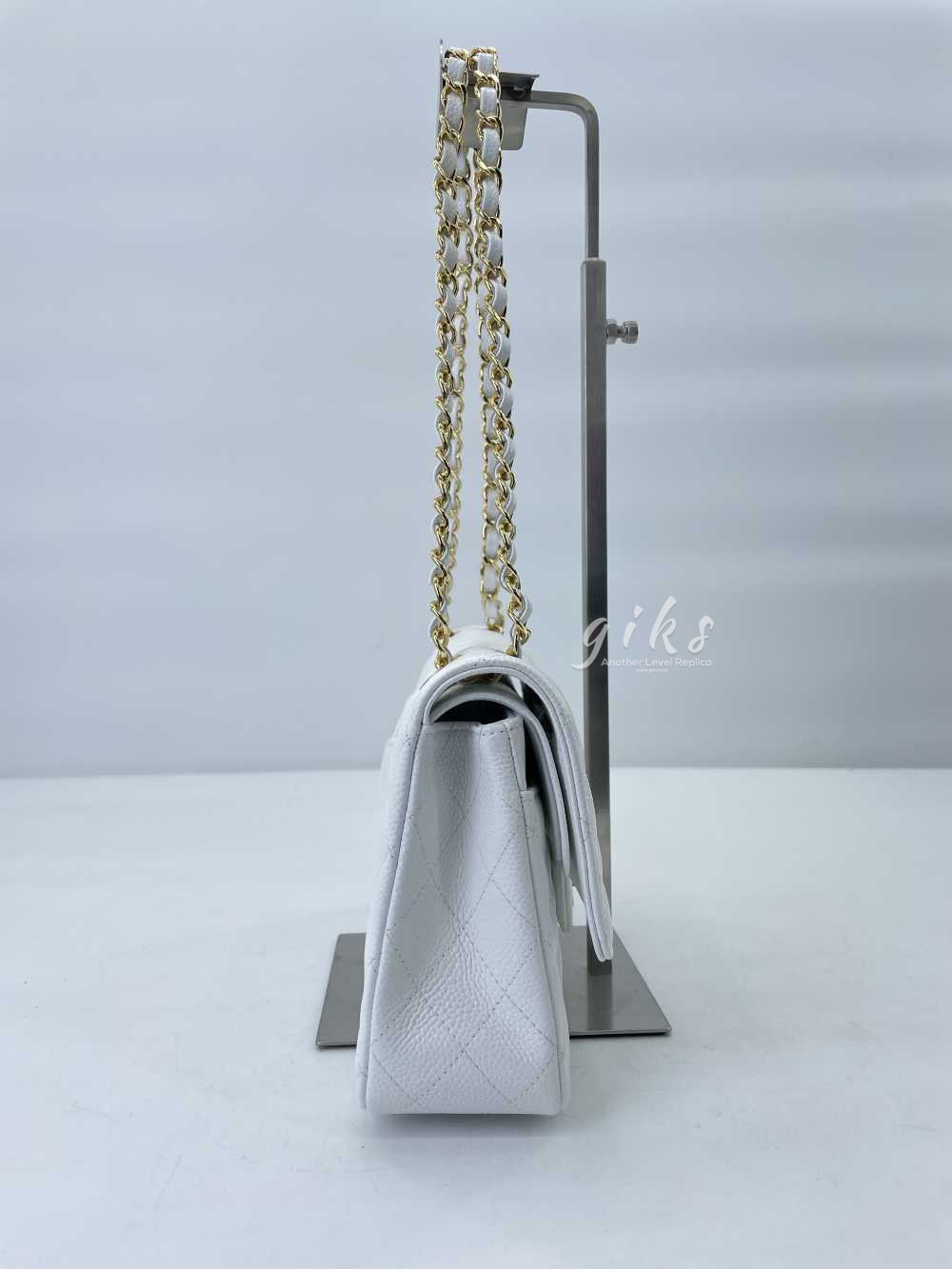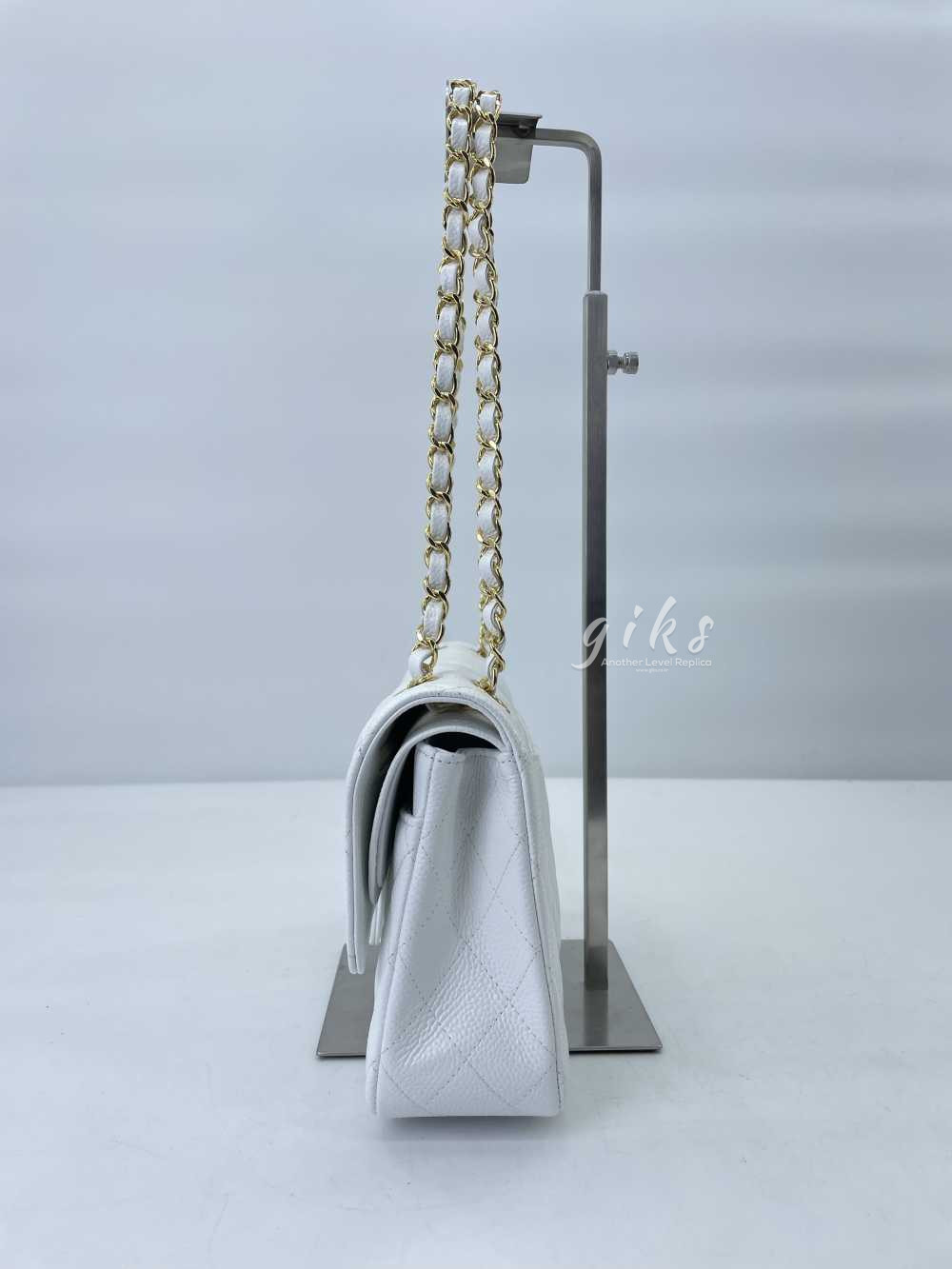 샤넬 클래식 미디움 카프스킨 화이트 골드