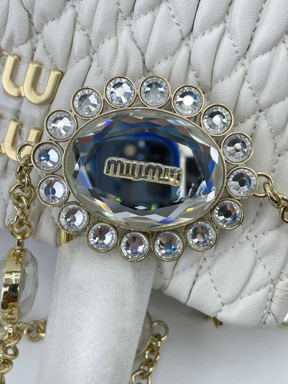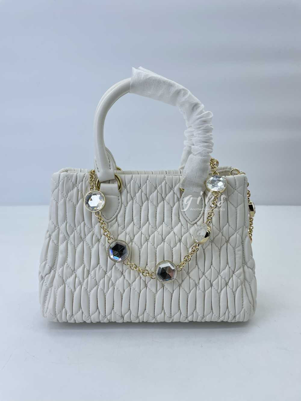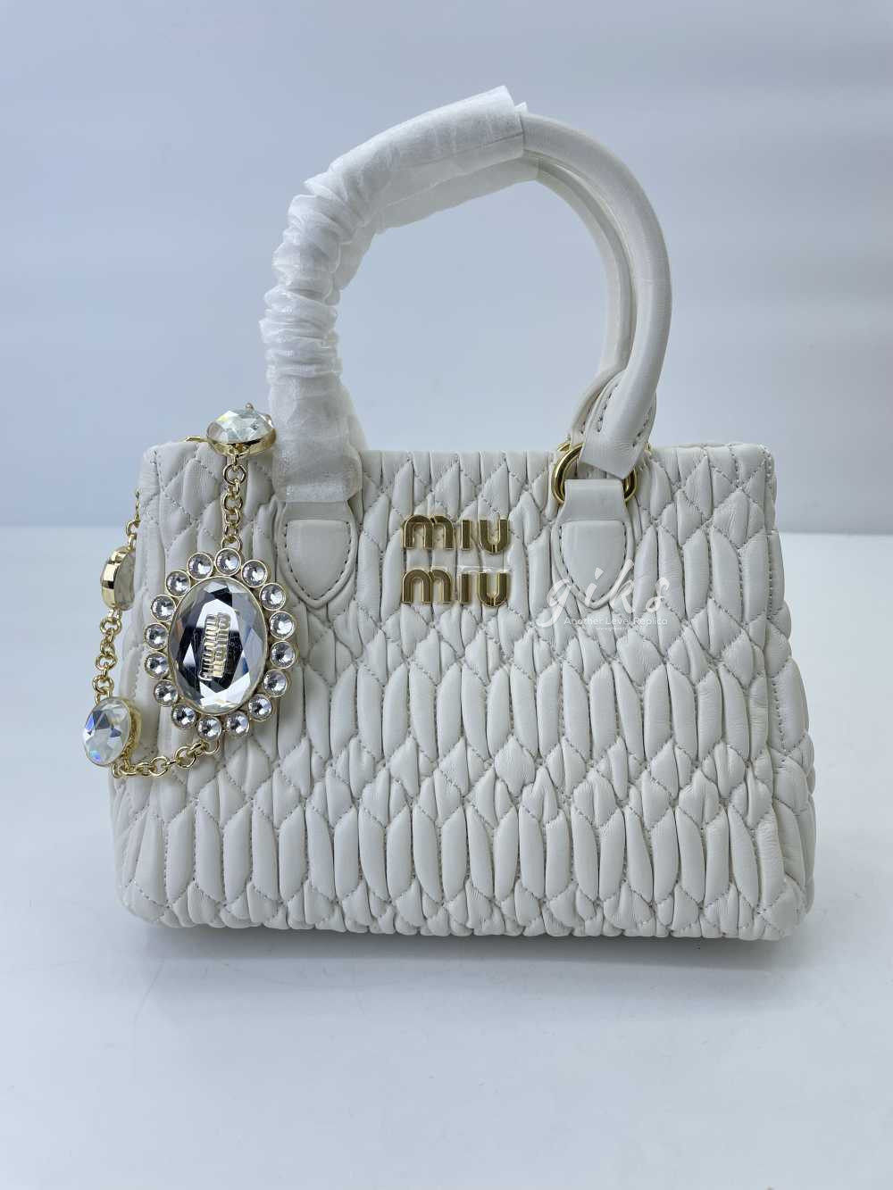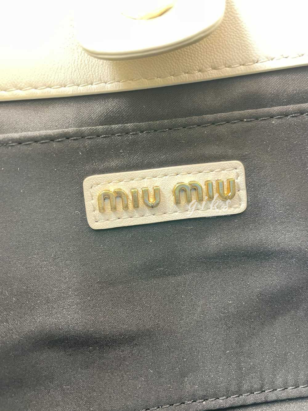 미우미우 크리스털 나파 가죽 핸드백 화이트