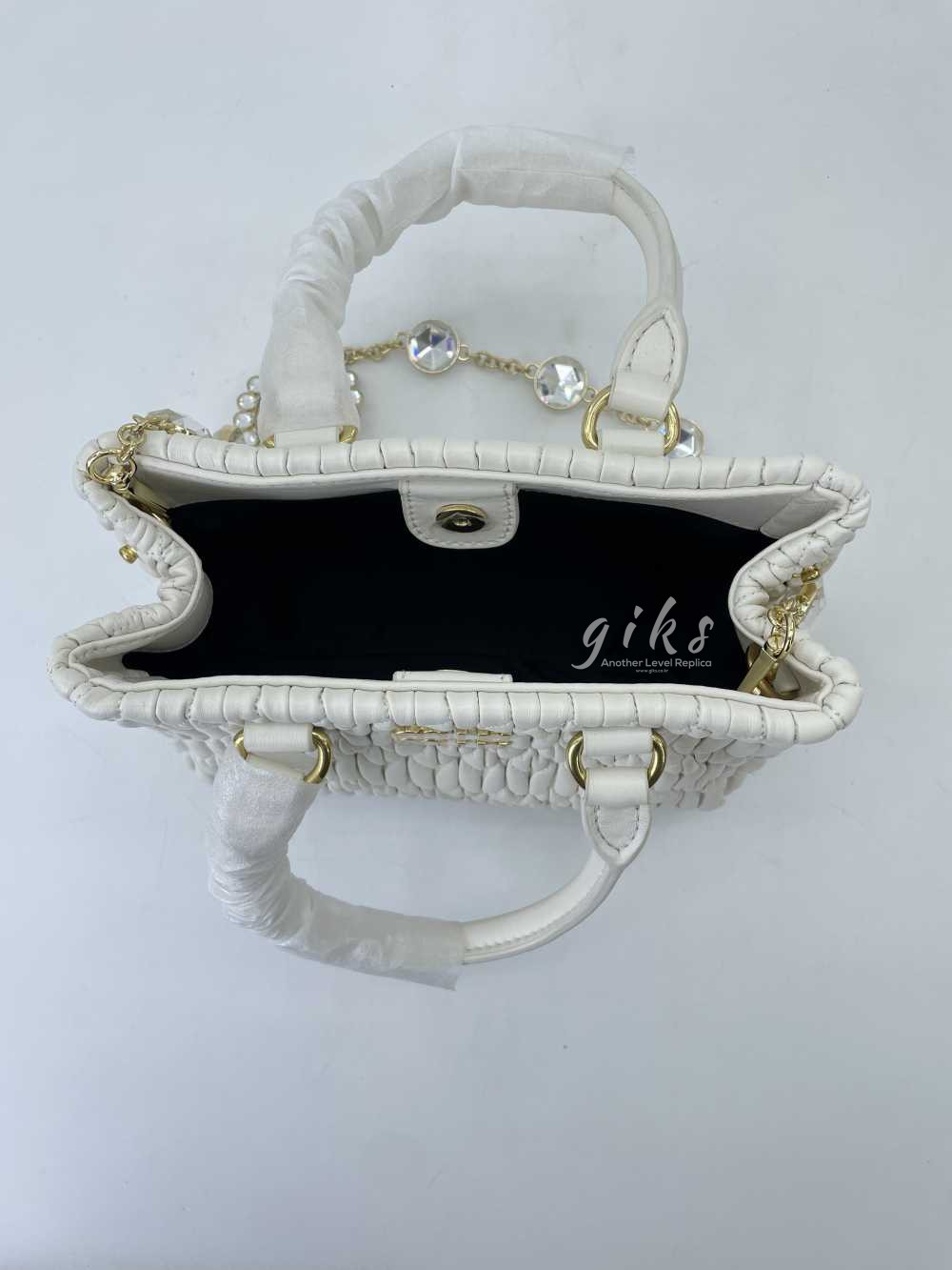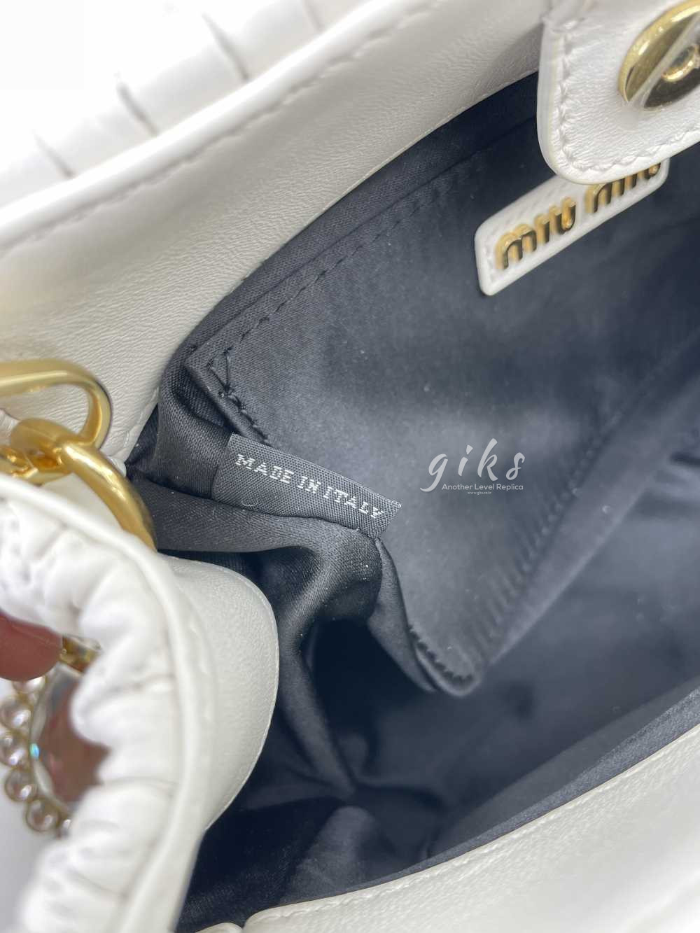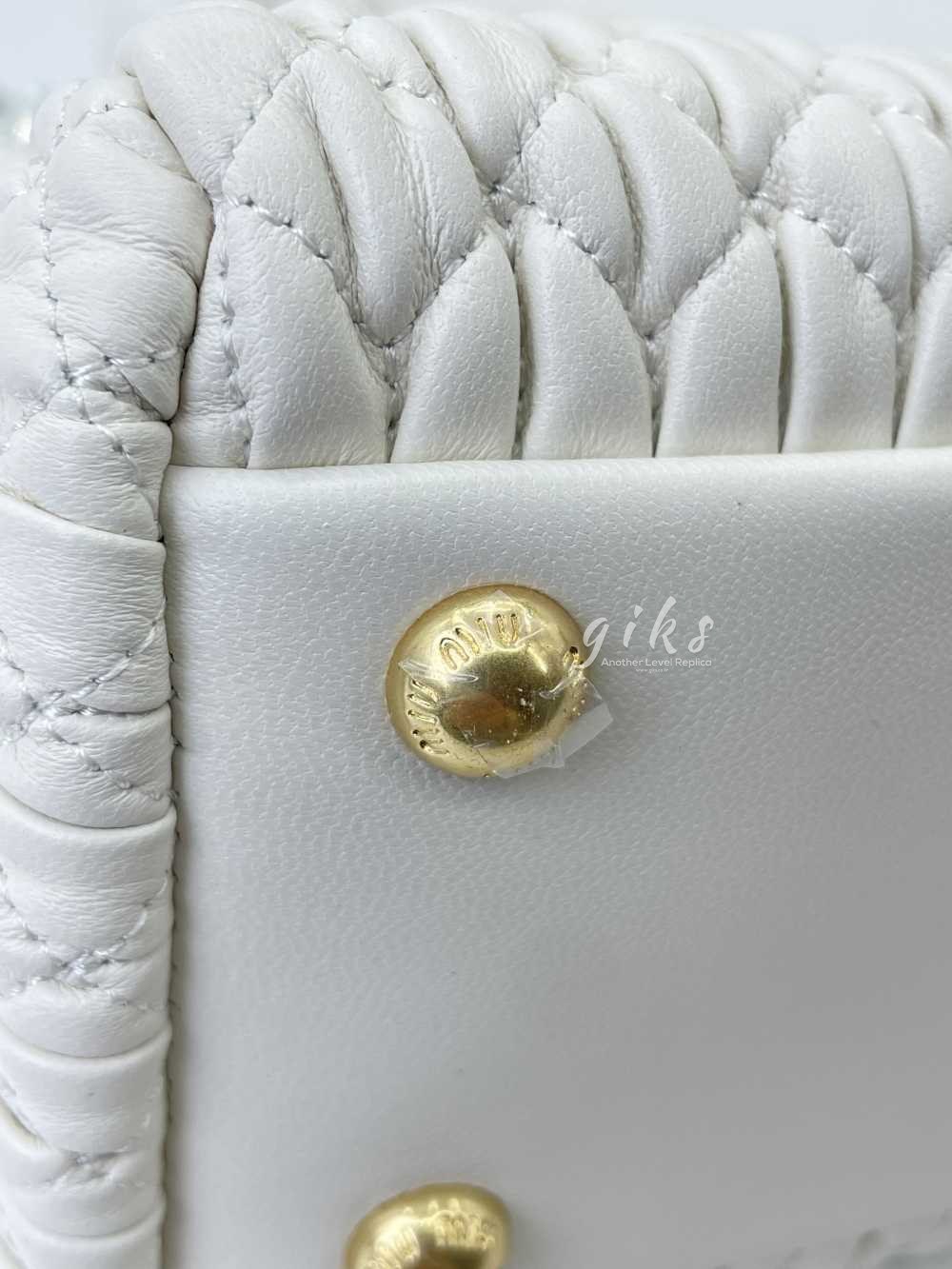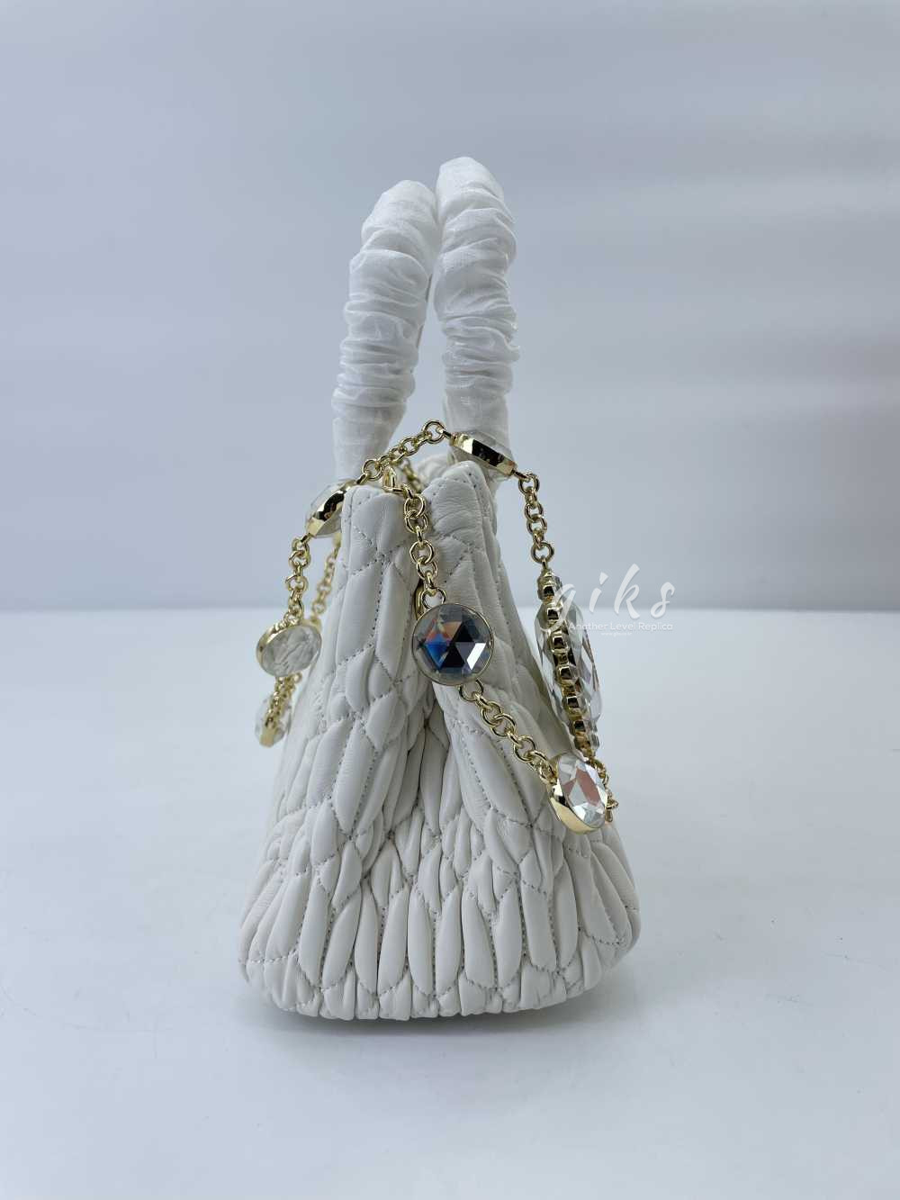 미우미우 크리스털 나파 가죽 핸드백 화이트