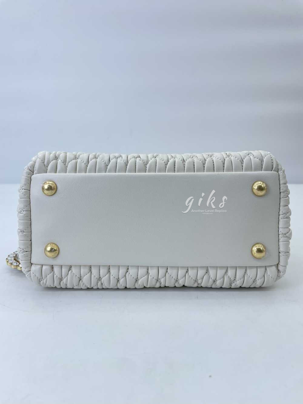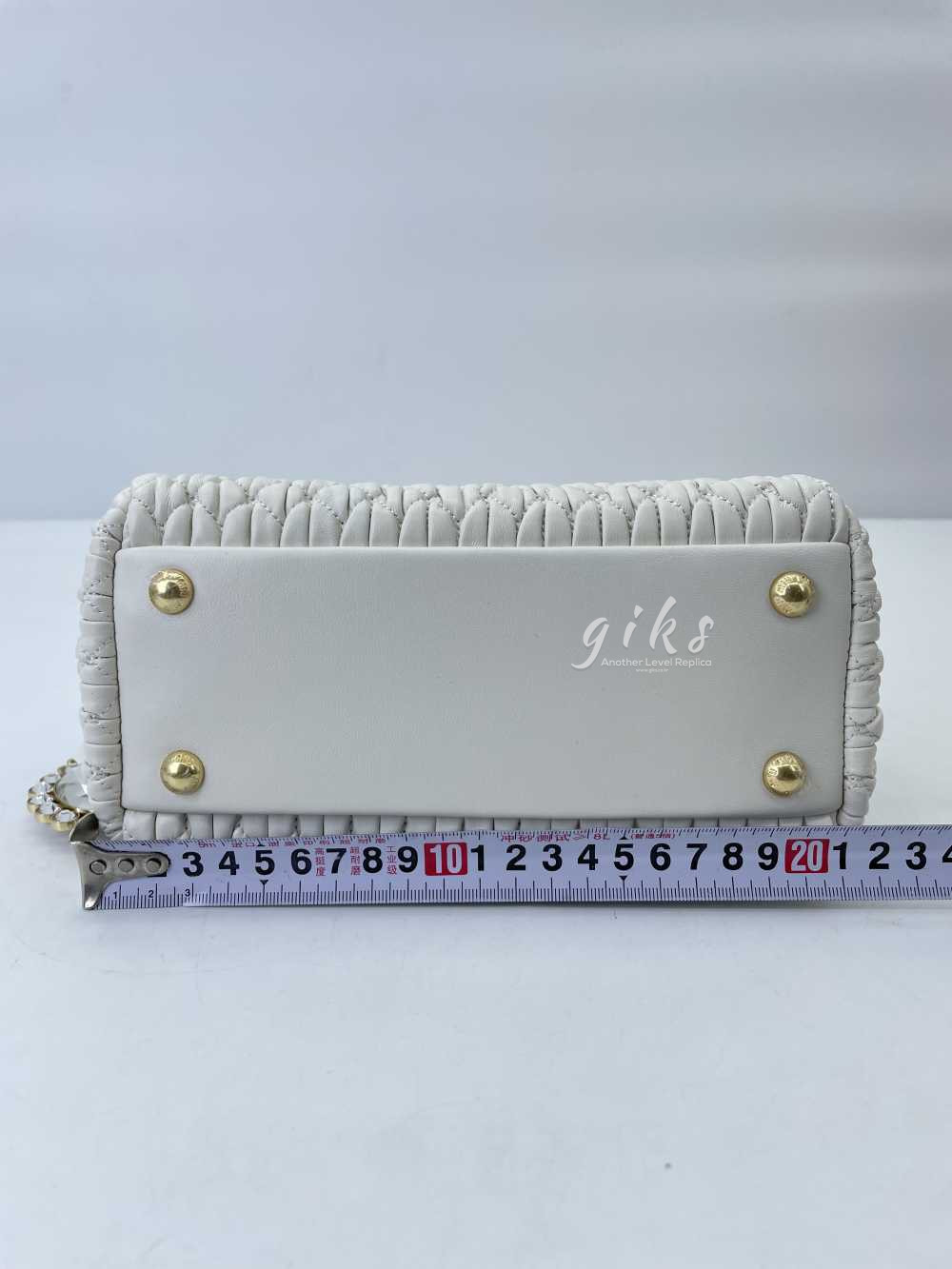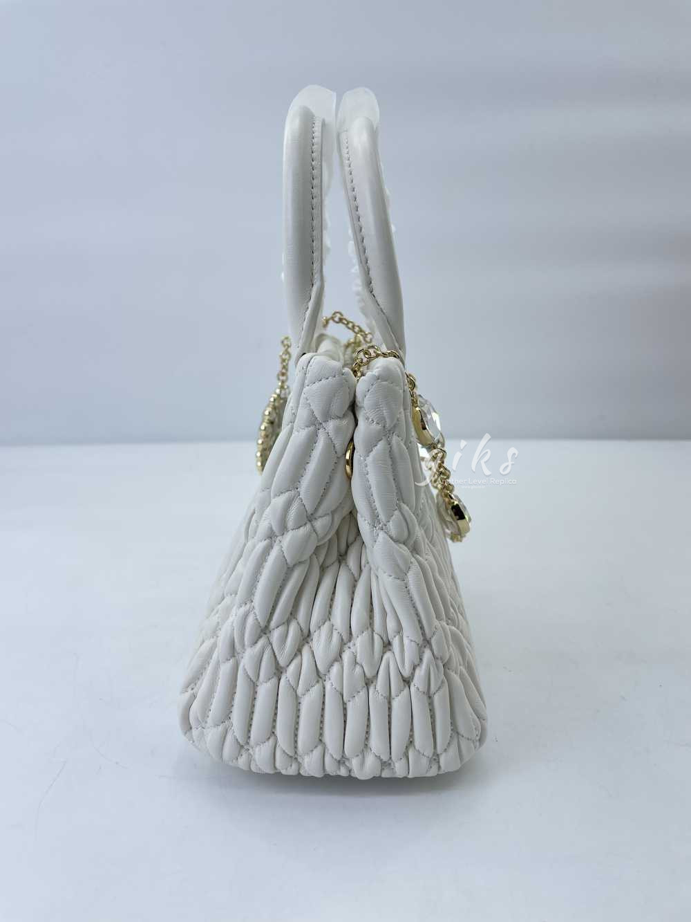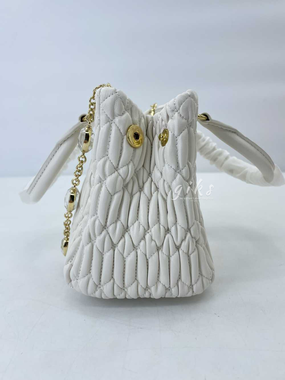 미우미우 크리스털 나파 가죽 핸드백 화이트