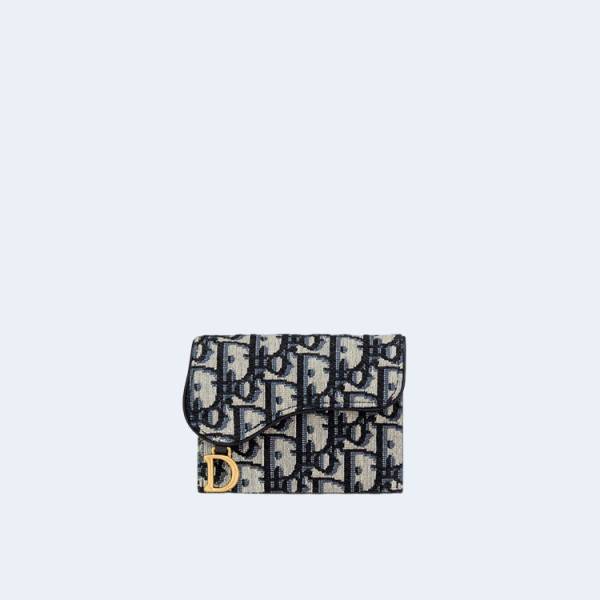 디올 오블리크 새들 플랩 카드 지갑 블랙