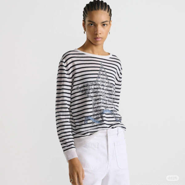 디올 마리니에르 모티브 코튼 리브드 니트