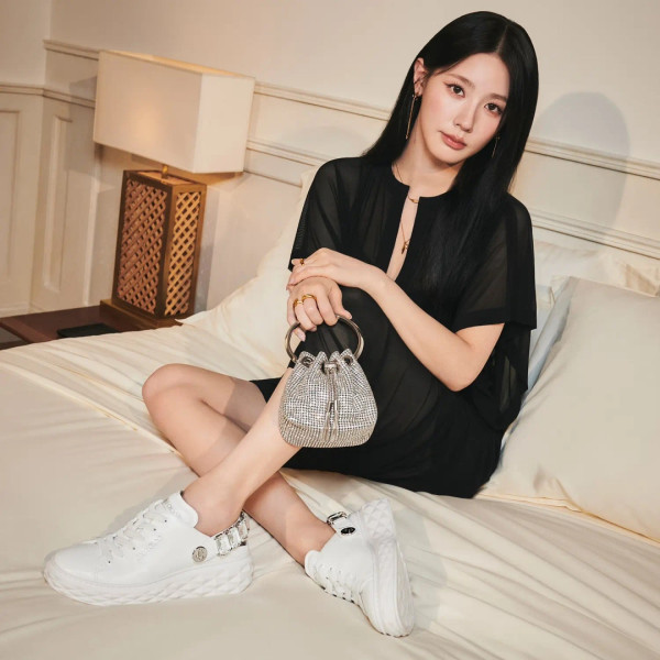지미추 크리스털 스트랩 디테일 화이트 나파 가죽 슬리퍼 스니커즈 > OTHERS