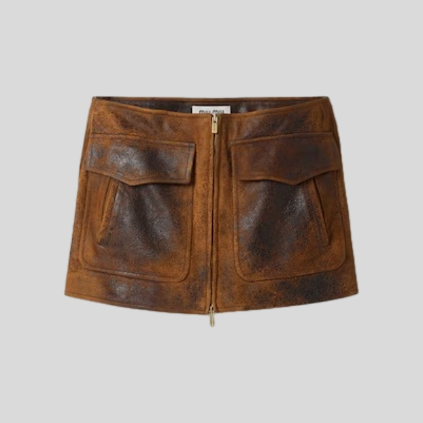 미우미우 왁스 스웨이드 가죽 자켓, 스커트