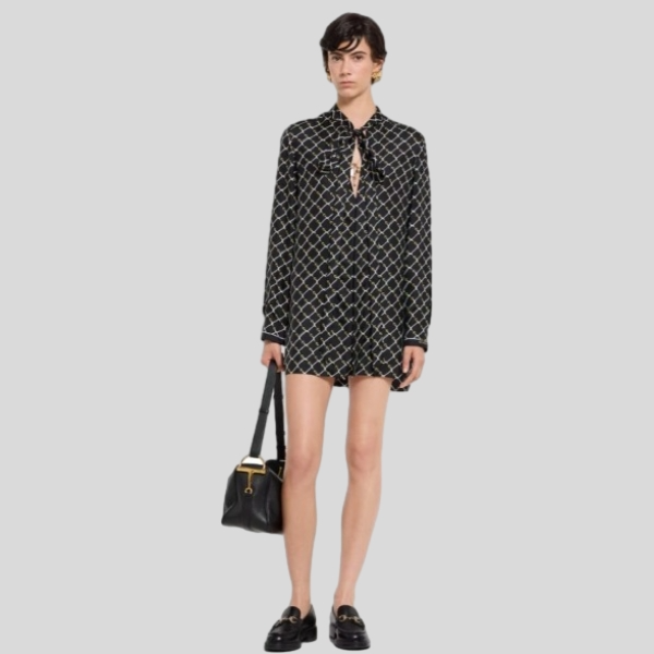 구찌 프린트 실크 트윌 드레스