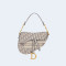 디올 오블리크 자수 새들 백 그레이