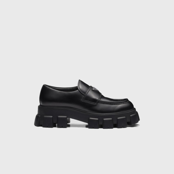 프라다 모놀리스 뉘앙스 브러시드 블랙 가죽 로퍼