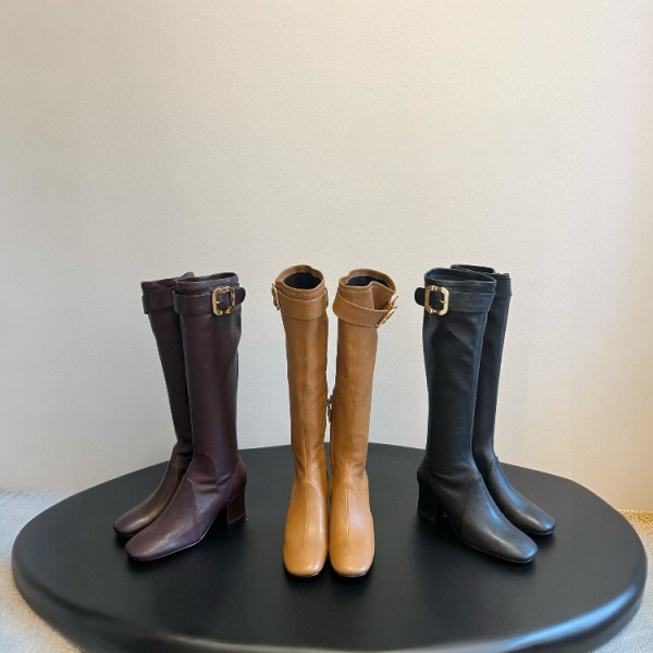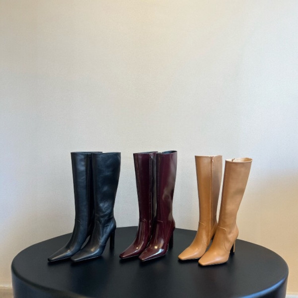 생로랑 스퀘어 토 가죽 롱부츠