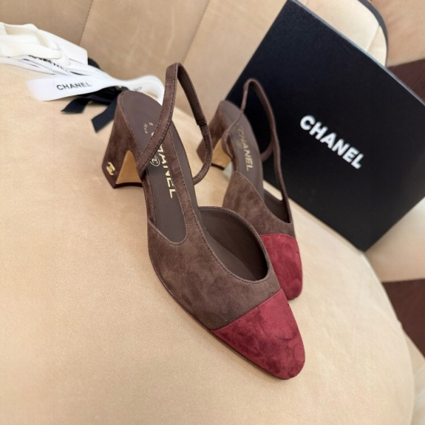 샤넬 스웨이드 투톤 슬링백 펌프스