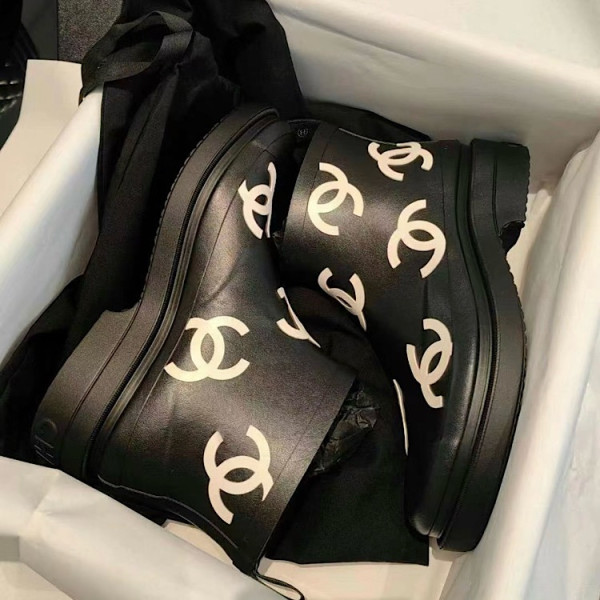 샤넬 로고 앵클 숏 레인부츠