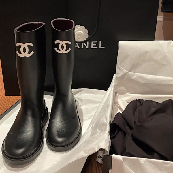 샤넬 카우초크 CC 로고 블랙 러버 레인 부츠