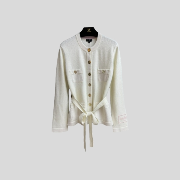 샤넬 캐시미어 타이 웨이스트 가디건