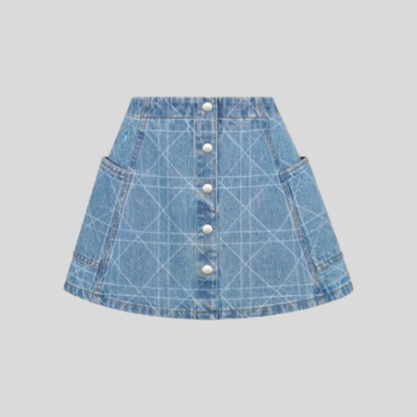 디올 체크 데님 스커트