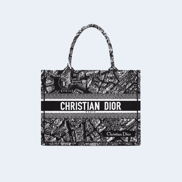 디올 Plan de Paris 북 토트 미디엄 백 블랙 & 화이트