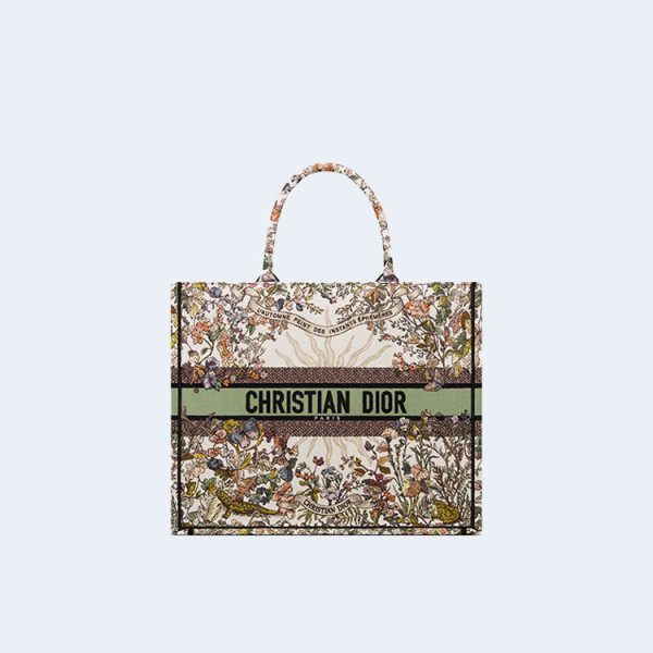 디올 북 에크루 멀티 컬러 자수 토트 미디엄 백