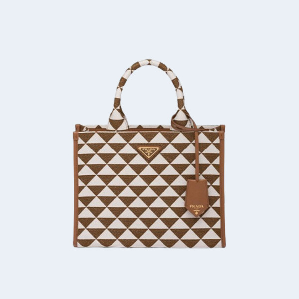 프라다 라피아 스트라이프 토트백 탄컬러