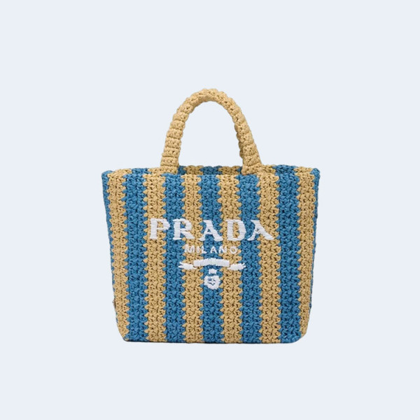 프라다 라피아 토트백 블루