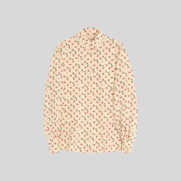 발렌티노 체리픽 프린트 크레이프 드 신 셔츠