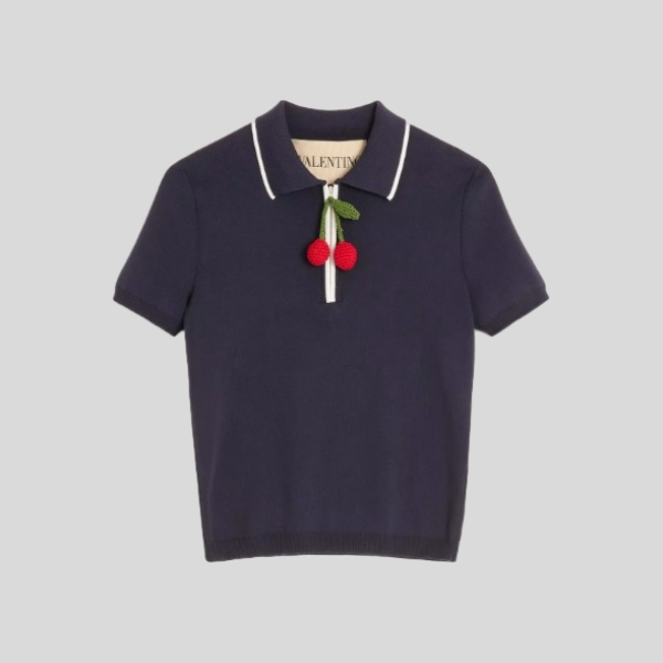 발렌티노 체리픽 코튼 탑 네이비